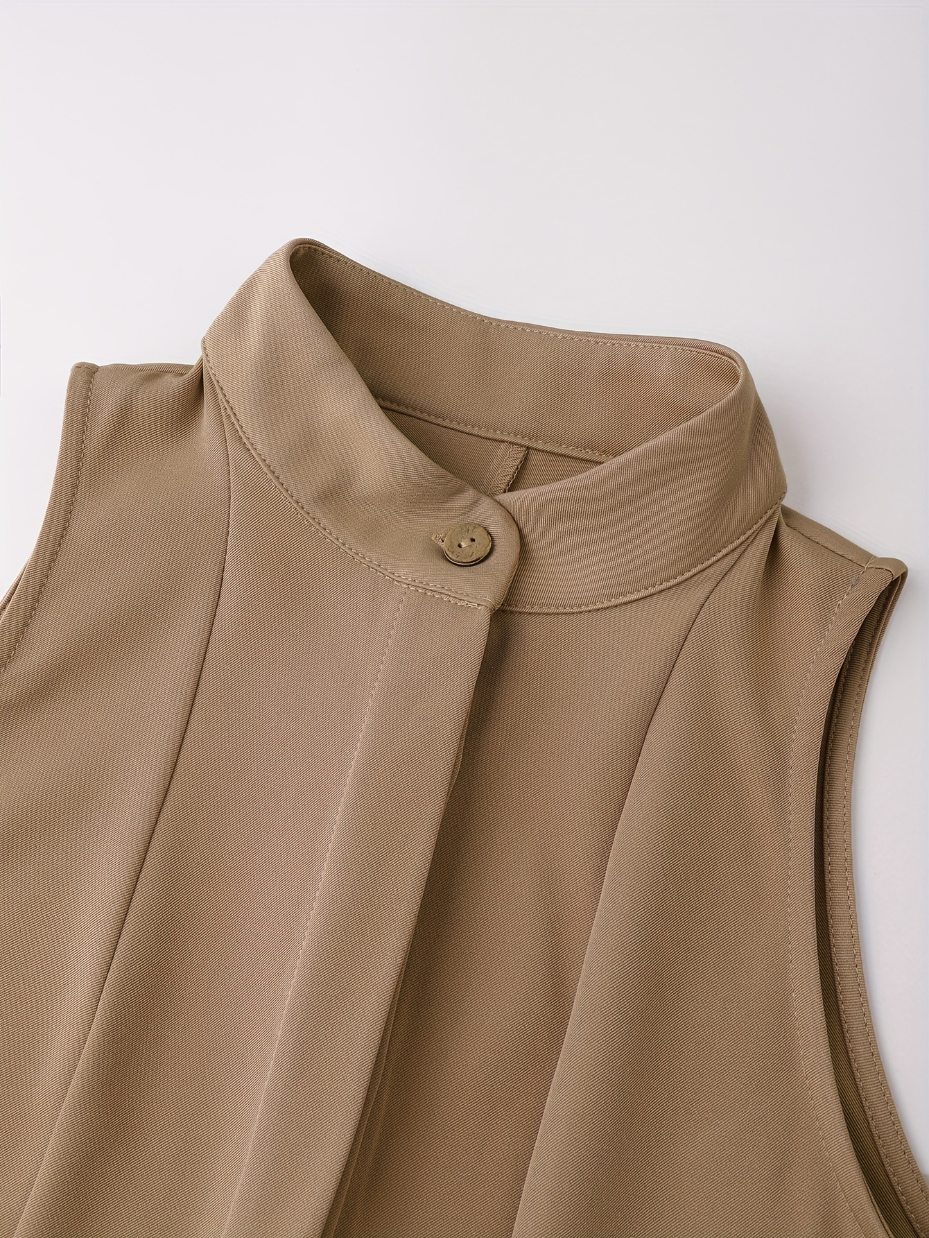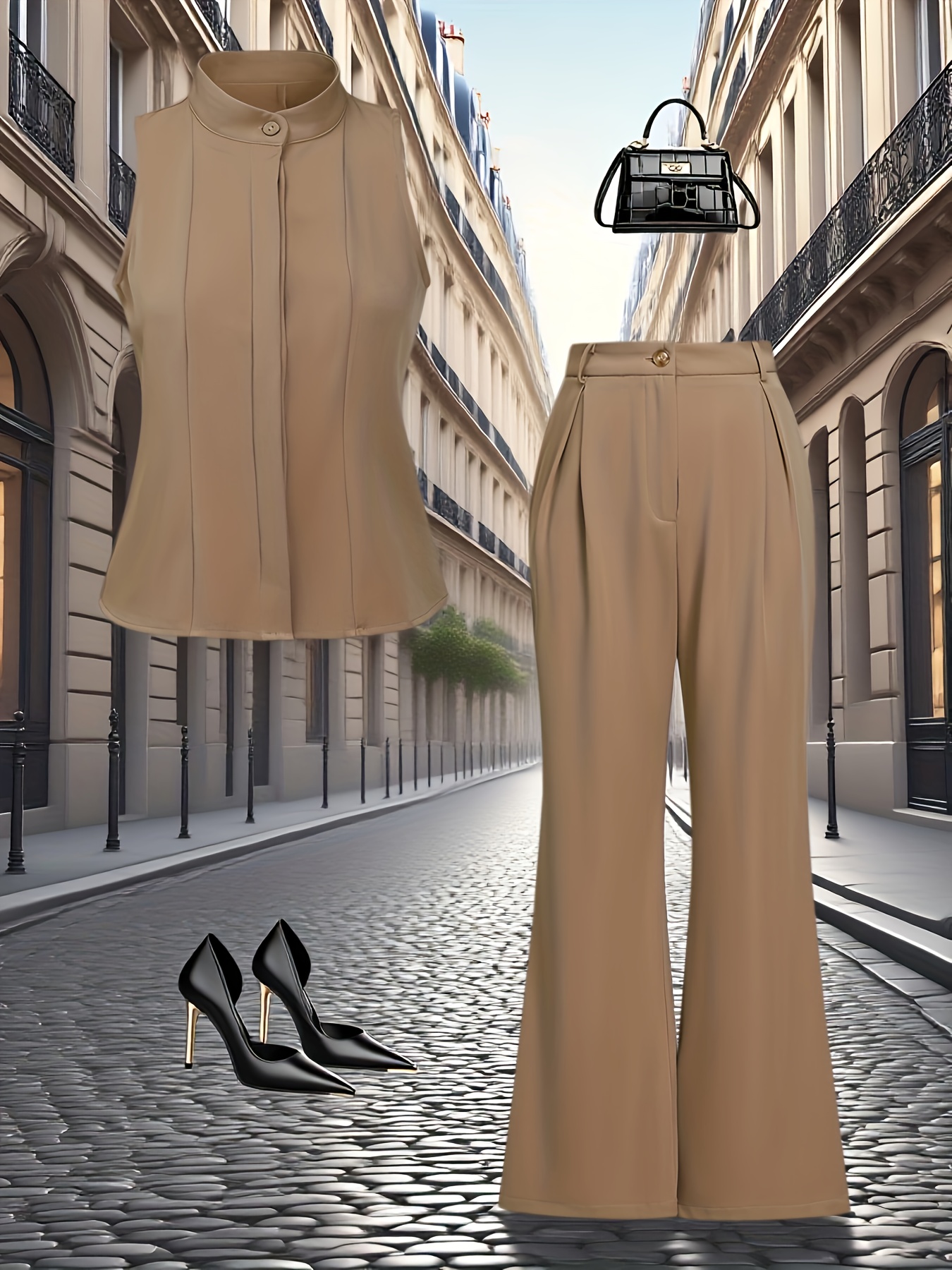 Elegant High Neck Sleeveless Waistcoat & Wide-Leg Pants Set - Chic Spring/Summer Outfit, Solid Color, Regular Fit, Perfect for Casual Or Formal Occasions, Casual Chic Outfit | High Neck Waistcoat | Belted Waistcoat, Ladies Pant Sets