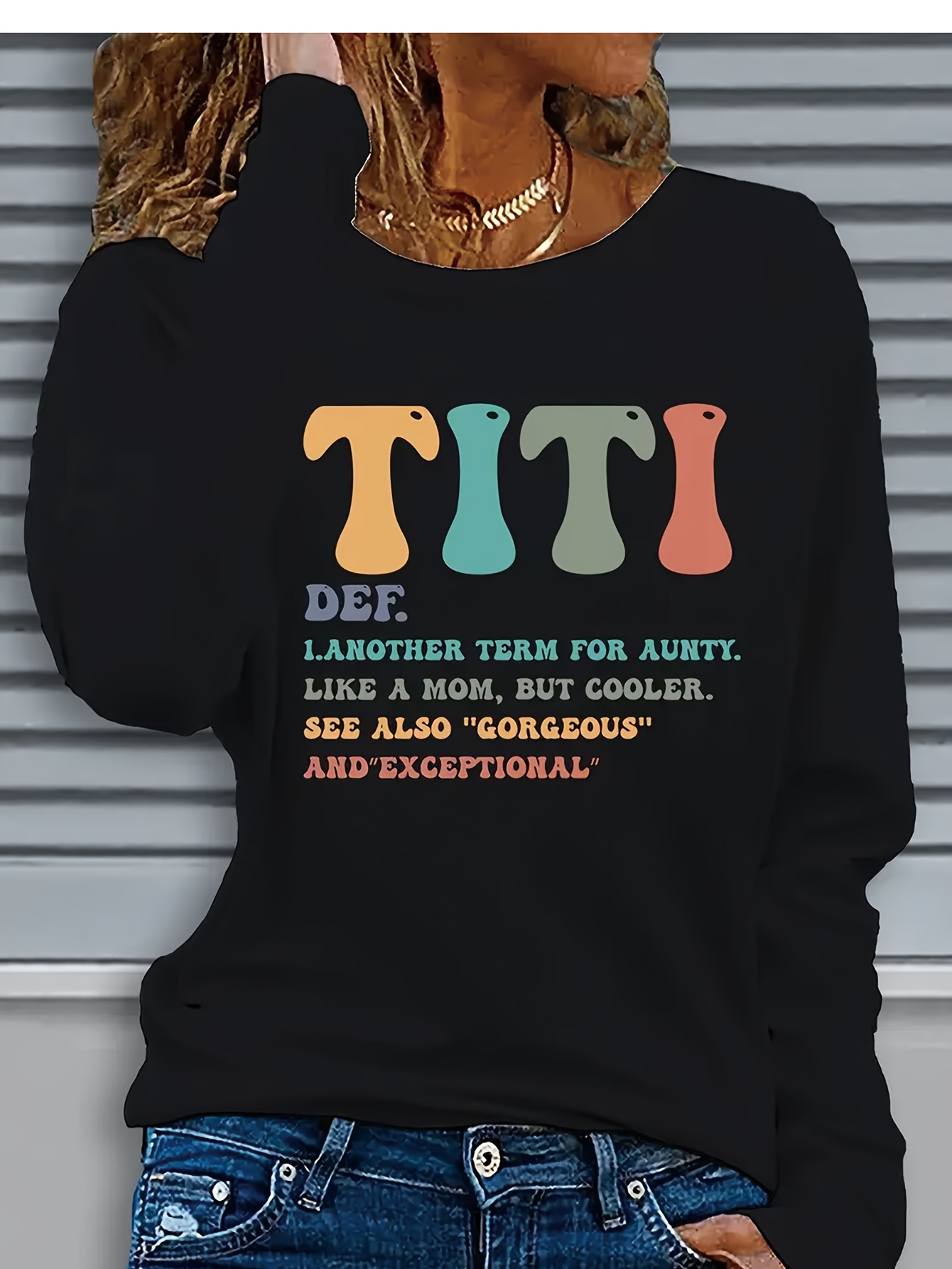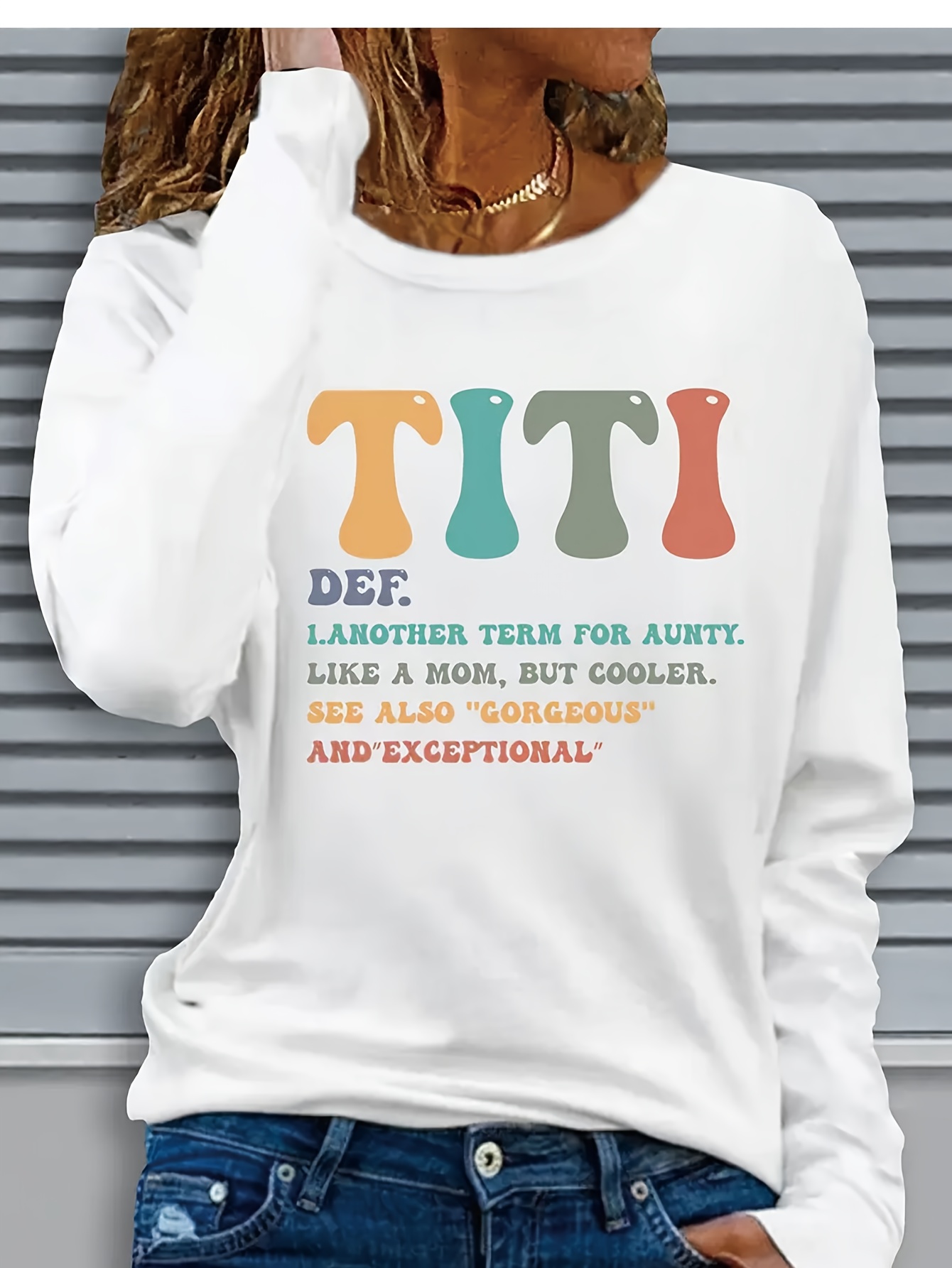 Women'S Casual Long Sleeve T-Shirt - Funny "TITI" Aunt Definition Saying, Soft Beige Everyday Top with Round Neck, Machine Washable Everyday Shirt for Women, Aunt Apparel, Comfortable Pullover, Relaxed Fit Tee, Breathable Fabric