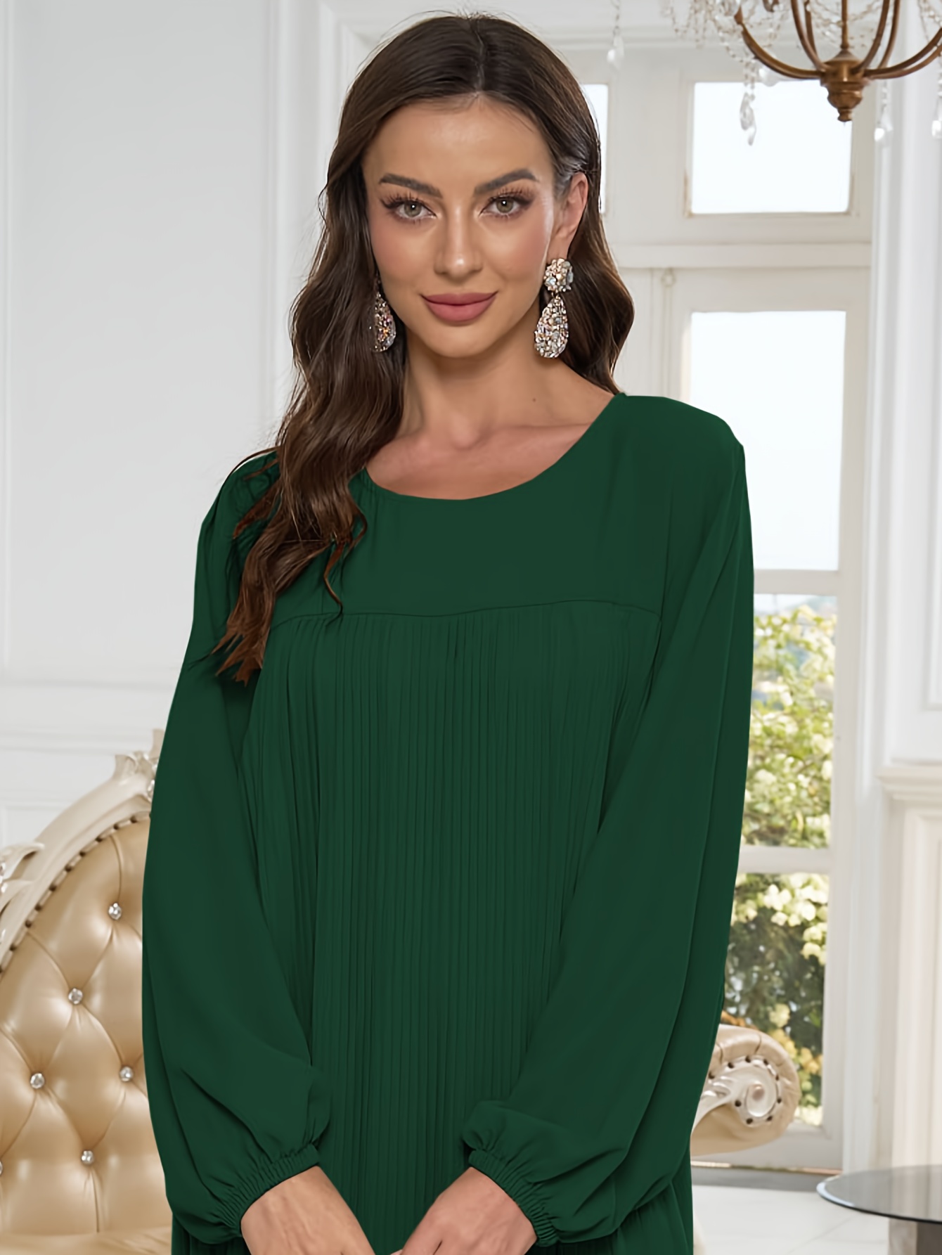 1pc Elegant holiday fashion versatile loose pleated rear zipper solid color suitable for daily wear comfortable casual loose comfortable Women's abaya dress.abayas for women muslim long sleeve dresses for women long frocks for women