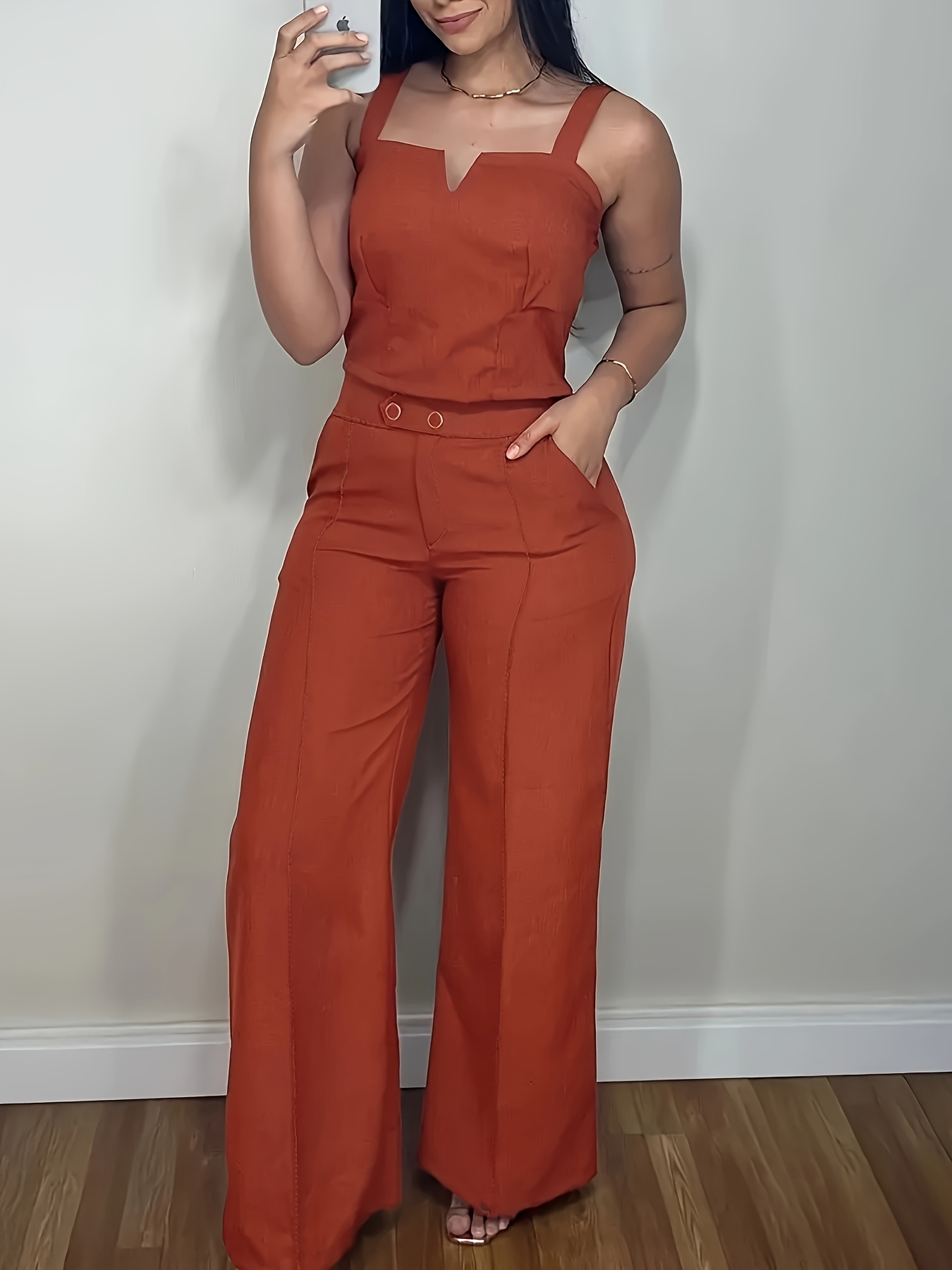 Chic Shoulder Strap Vest and Wide-Leg Pants Set, Minimalist Elegance