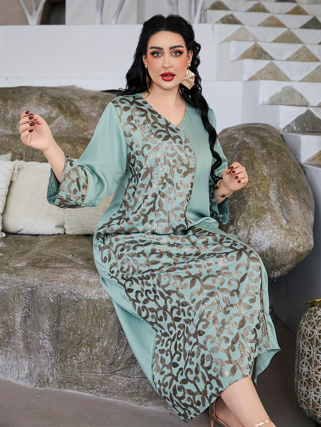 Directional Heavy Industrial Beaded Embroidery Arabic Women's Elegant Dress JALABIA V-Neck Black Creative Asymmetrical Splicing Latest Design Saudi National Day Gown