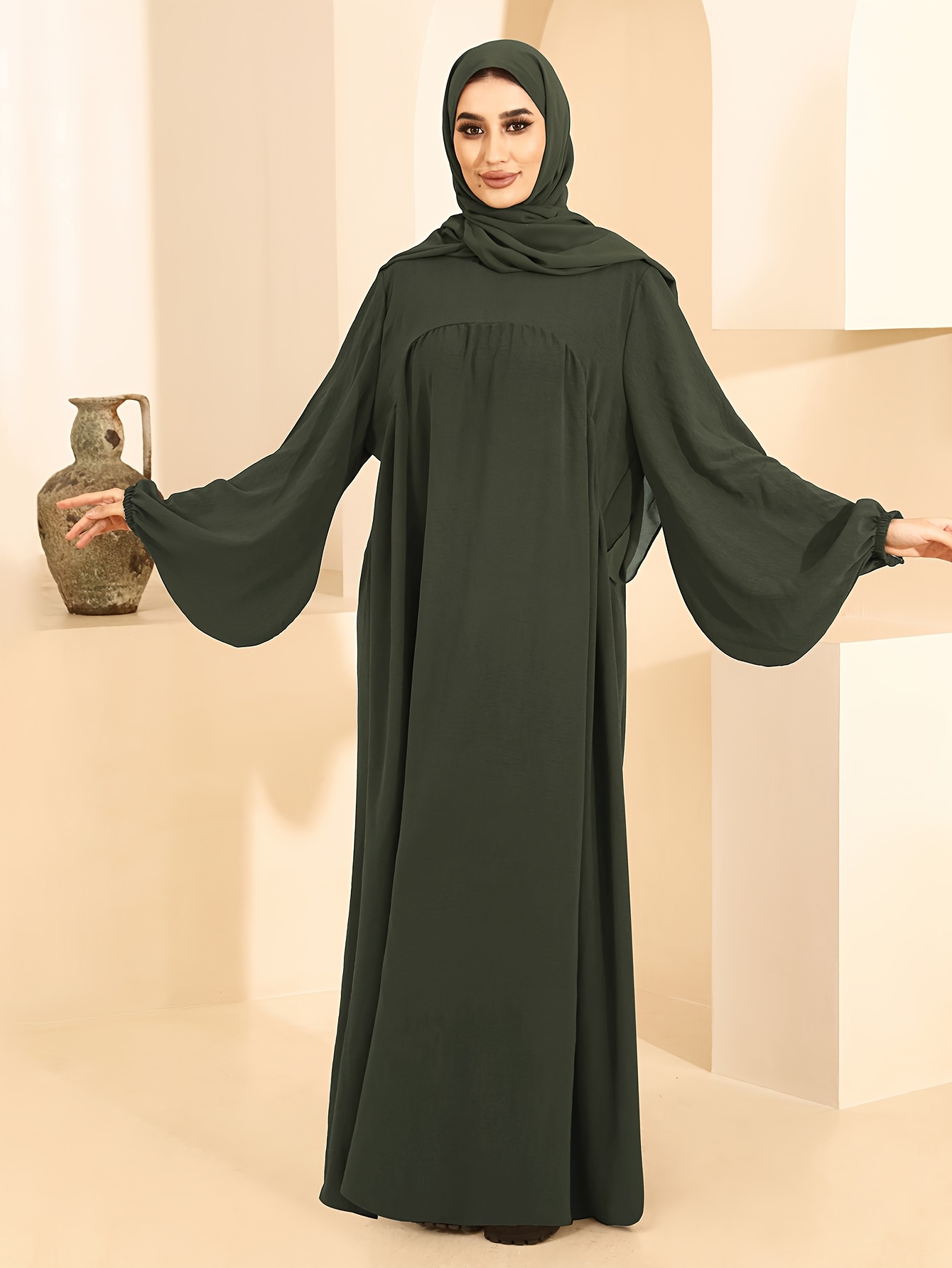 1pc Women'S Elegant Abaya Dress - Loose Fit Solid Color Muslim Prayer Dress with Belt, Lightweight Breathable Fabric for Spring Summer Fall, Casual & Formal Wear, Modest Muslim Women'S Clothing